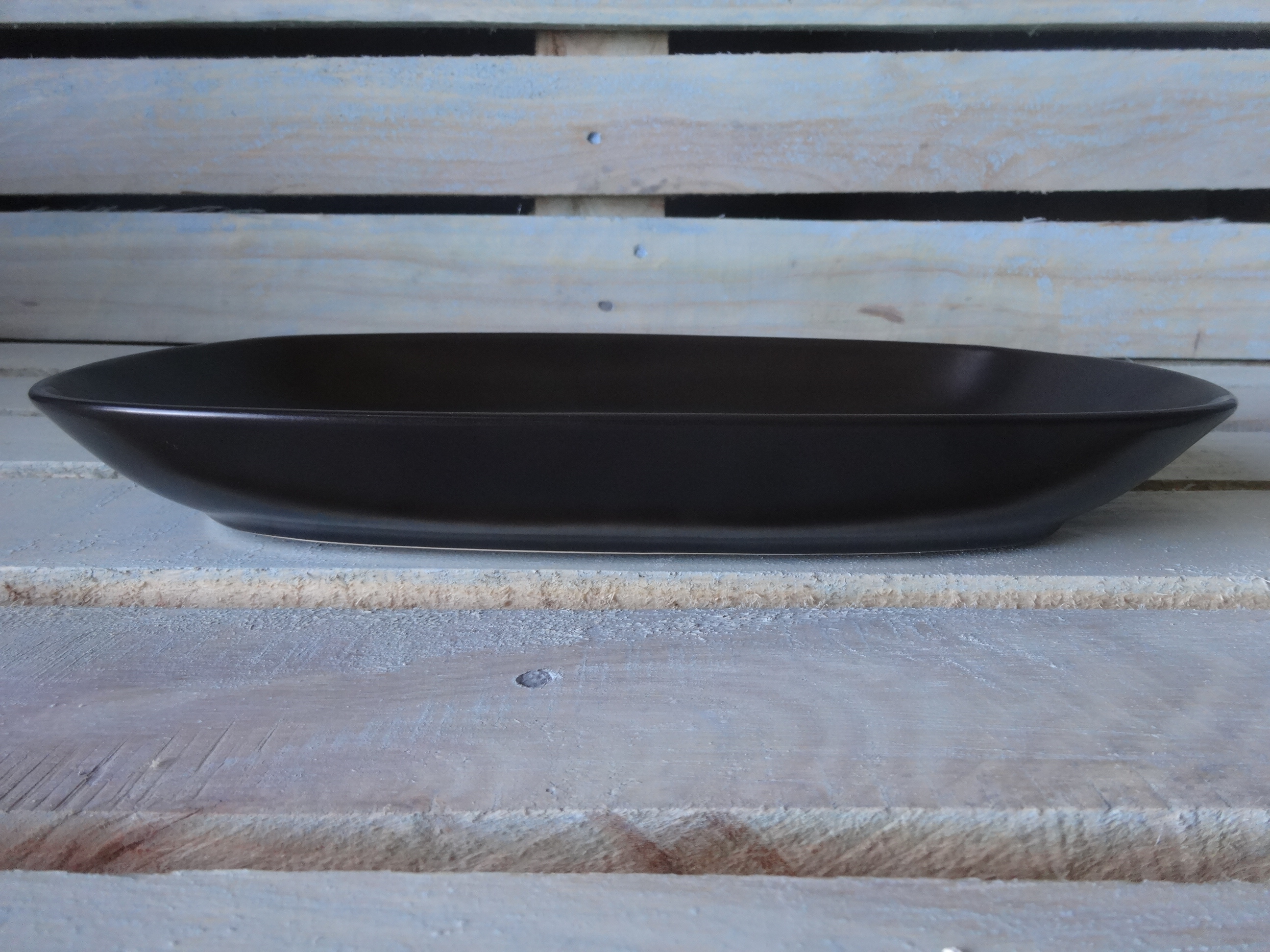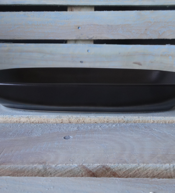 Большое блюдо овально-прямоугольной формы с высокими бортиками. Оригинальная подача в таком блюде гарантирована.  Матовая поверхность.
