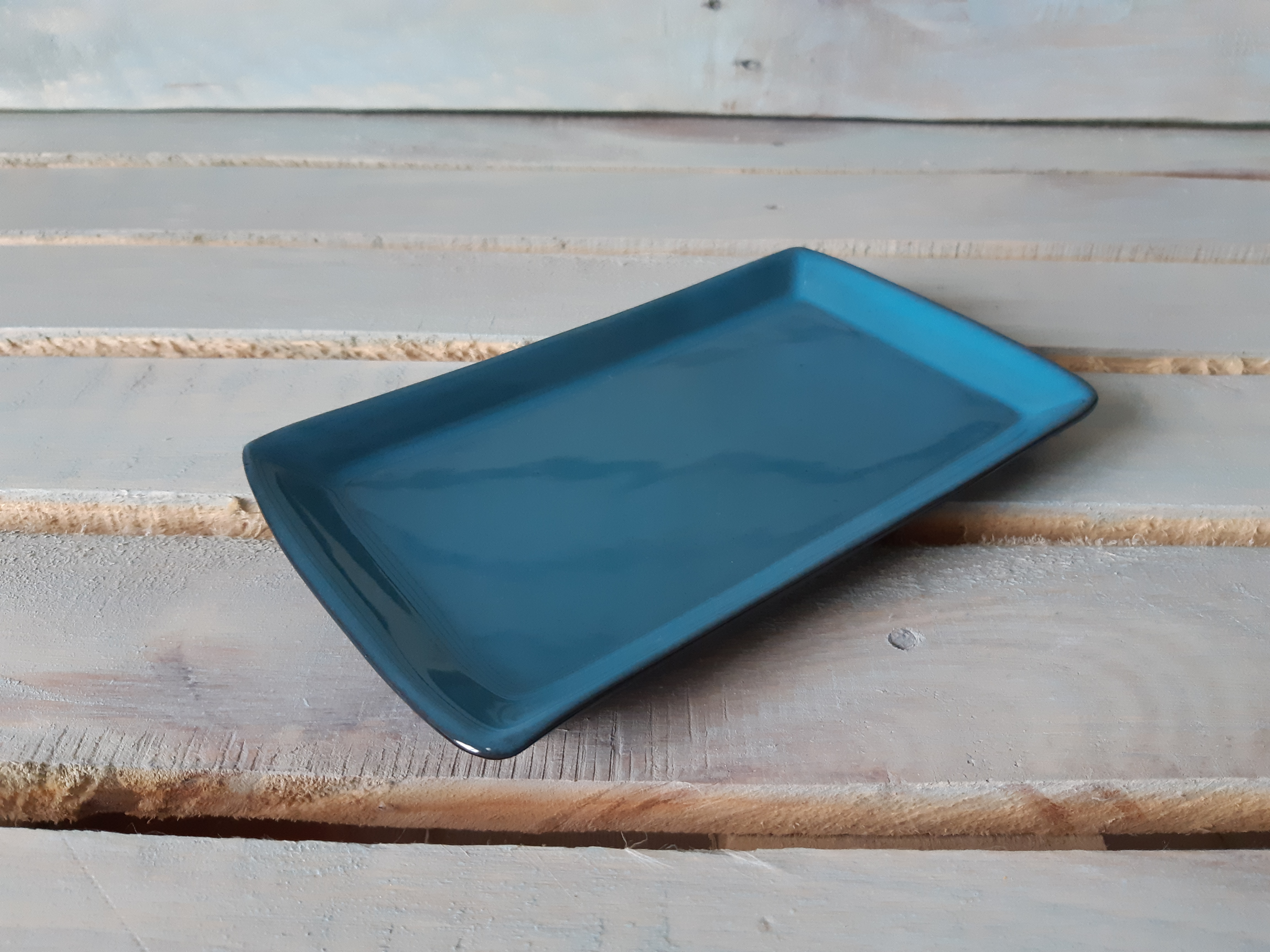 Стильное прямоугольное блюдо. Удобная и изысканная деталь для сервировки стола. Блюдо небольшого размера и его плюс - это компактность. Очень практично в использовании и хранении, занимает мало места. Глянцевая поверхность.