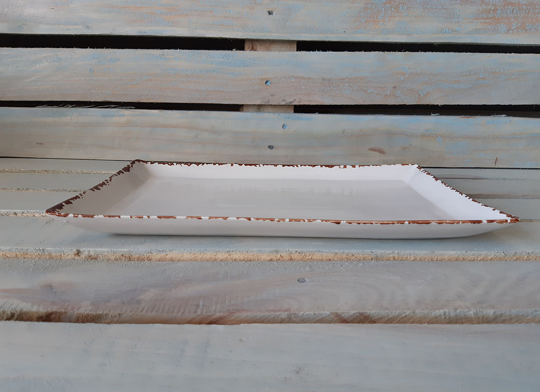 Блюдо большой прямоугольной формы. Очень практична в использовании и хранении, занимает мало места. Блюда, поданные на тарелках выглядят оригинально и аппетитно, притягивая внимания посетителей ресторанов. Матовая поверхность.