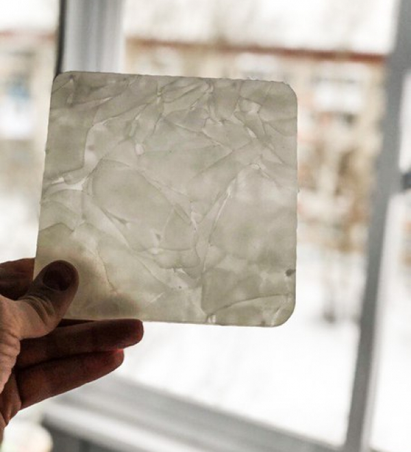 Толщина стекла 13 мм, легкая матовая текстура, цвет: белый. Размер:13,5х13,5 см.